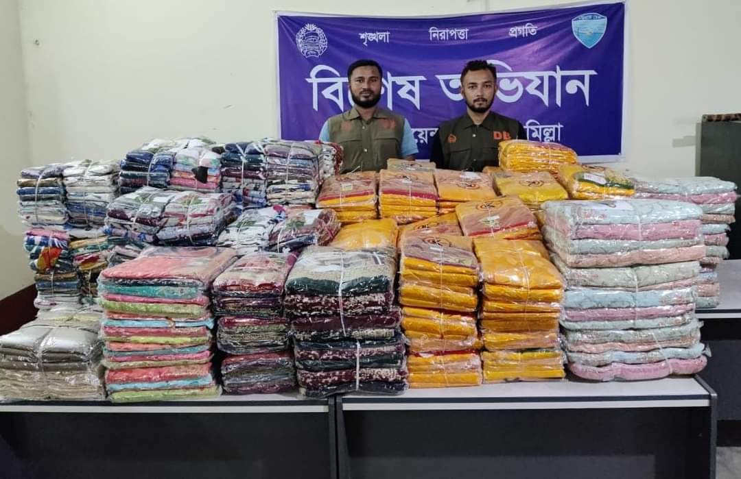 আমদানি শুল্ক কর ফাঁকি দিয়ে চোরাই পথে আনা ভারতীয় ৭১৪ (সাত শত চৌদ্দ) পিস শাড়ী ও ১টি নোহা গাড়ী উদ্ধার