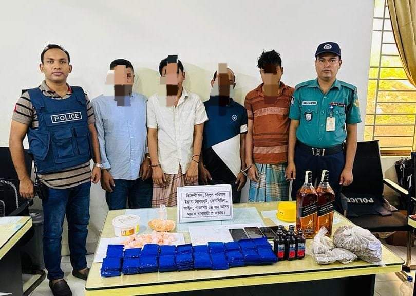 সিএমপি পাঁচলাইশ থানার অভিযানে বিপুল পরিমাণ মাদক সহ চার পেশাদার মাদক কারবারি কে আটক পুলিশ
