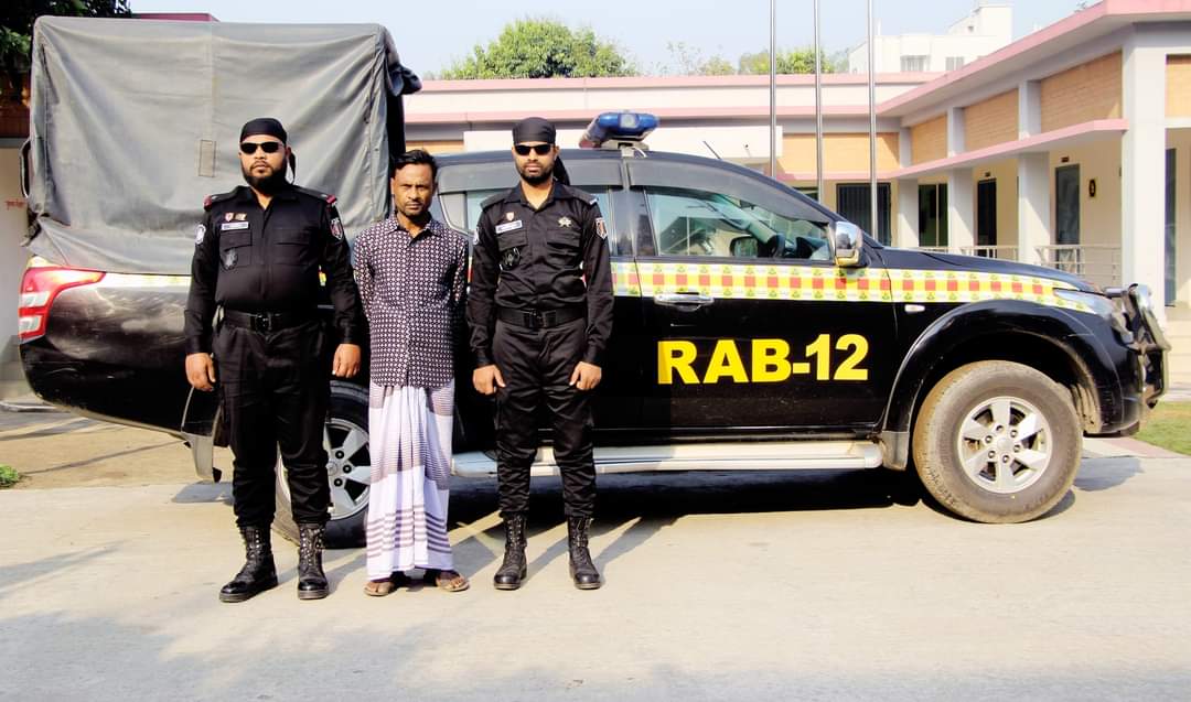 এরই ধারাবাহিকতায় মোঃ মারুফ হোসেন বিপিএম, পিপিএম অধিনায়ক র্যাব-১২ সিরাজগঞ্জ এর দিকনির্দেশনায় এবং র্যাব সদর দপ্তরের গোয়েন্দা শাখার সহায়তায় সদর কোম্পানি, র্যাব-১২ ও র্যাব-৪, সিপিসি-২, সাভার ক্যাম্পের যৌথ আভিযানিক দল গত ২৫ ফেব্রুয়ারি ২০২৪ তারিখ রাতে “ঢাকা জেলার সাভার মডেল থানাধীন কর্ণপাড়া এলাকায়” অভিযান পরিচালনা করে মোঃ শাহাদাৎ হোসেন (৪৩), পিতা-মৃত কাইয়ুম মোল্লা, সাং-মধুপুর, থানা-উল্লাপাড়া, জেলা-সিরাজগঞ্জকে গ্রেফতার করতে সক্ষম হয়।
