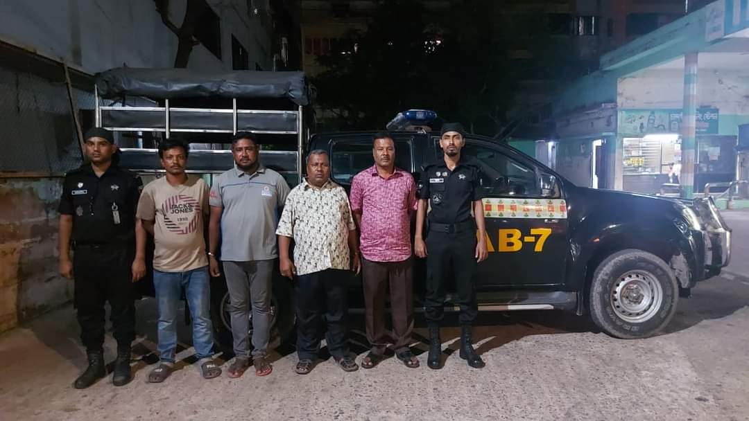 সম্প্রতি চট্টগ্রাম মহানগরীর পাহাড়তলী এলাকায় র্যাবের নাম ভাঙ্গিয়ে জনৈক মোঃ শফি নামে এক ব্যক্তি চাঁদা আদায় করছে মর্মে একটি সংবাদ প্রকাশিত হয়। উক্ত সংবাদের প্রেক্ষিতে র্যাব-৭, চট্টগ্রাম চাঁদা আদায়কারী মূলহোতা মোঃ শফি এবং তার অন্যান্য সহযোগীদের গ্রেফতারের লক্ষ্যে গোয়েন্দা নজরদারি শুরু করে। নজরধারীর এক পর্যায়ে র্যাব-৭, চট্টগ্রাম গোপন সংবাদের মাধ্যমে জানতে পারে যে, কতিপয় চাঁদাবাজ চট্টগ্রাম মহানগরীর পাহাড়তলী থানাধীন এ-ব্লক বাস স্ট্যান্ড সংলগ্ন এলাকায় পাকা রাস্তার উপর বিভিন্ন বাস, টেম্পু ও সিএনজি অটোরিক্সা চালকদের গাড়ি দাড় করিয়ে জোরপূর্বক চাঁদা আদায় করছে। উক্ত তথ্যের ভিত্তিতে র্যাব-৭, চট্টগ্রাম এর একটি আভিযানিক দল গত ২০ এপ্রিল ২০২৪ইং তারিখ আনুমানিক ১৮৪৫ ঘটিকায় বর্ণিত এলাকায় অভিযান পরিচালনা করে আসামি ১। মোঃ শফি (৫৮), পিতা-মৃত আব্দুল ওদুদ, সাং-হালিশহর হাউজিং এস্টেট, থানা-হালিশহর, চট্টগ্রাম মহানগরী, ২। মোঃ আবুল কালাম আজাদ (৫৪), পিতা-মৃত সৈয়দুর রহমান, ৩। মোঃ রাশেদ (৩২), পিতা-মৃত মোঃ শফি, উভয়ের সাং-আব্দুল পাড়া (দক্ষিণ কাট্টলী), থানা-পাহাড়তলী, চট্টগ্রাম মহানগরী এবং ৪। মোঃ শাকিল (২৮), পিতা-মৃত ইলিয়াস, সাং-পূর্ব হরিশপুর, থানা-সন্দীপ, জেলা-চট্টগ্রাম (বর্তমানে-বাসা নং-২৩, বি-ব্লক, থানা-হালিশহর, চট্টগ্রাম মহানগরী’দের আটক করতে সক্ষম হয়। পরবর্তীতে উপস্থিত সাক্ষীদের সম্মুখে আটককৃত আসামিদের জিজ্ঞাসাবাদ ও তল্লাশীকালে তাদের নিজ হাতে বের করে দেয়া মতে বিভিন্ন গাড়ী হতে আদায়কৃত চাঁদার নগদ ৪৪,৪৫০/- টাকা উদ্ধারসহ আসামিদের গ্রেফতার করা হয়।