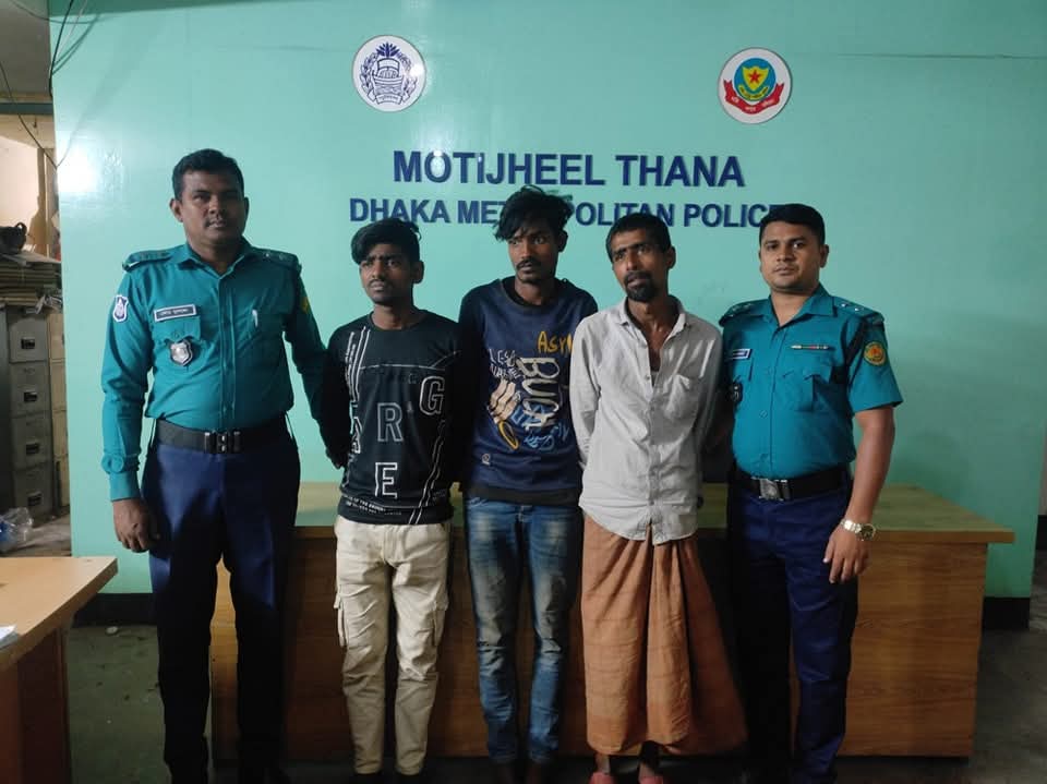 মতিঝিল থানা সূত্রে জানা যায়, মতিঝিল থানা এলাকায় রাত্রিকালীন ডিউটি করার সময় থানার টহল পুলিশ গোপন সংবাদ পায় যে, এজিবি কলোনী এলাকার আইডিয়াল স্কুল অ্যান্ড কলেজের সামনে কয়েকজন দেশীয় অস্ত্রসহ ডাকাতির প্রস্তুতি নিচ্ছে। এমন সংবাদের ভিত্তিতে রাত ৪:৩০ ঘটিকায় থানার টহল দল সেখানে অভিযান চালায়। পুলিশের উপস্থিতি টের পেয়ে দৌড়ে পালানোর চেষ্টার একপর্যায়ে উল্লিখিত তিনজনকে হাতেনাতে গ্রেফতার করে পুলিশ। গ্রেফতারের পর তাদের কাছ থেকে তিনটি ধারালো চাকু উদ্ধার করা হয়।