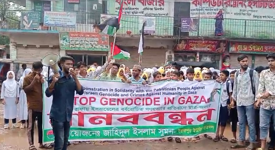 ফিলিস্তিনের গাজা উপত্যকায় ইসরাইলের লাগাতার আগ্রাসন, গণহত্যা ও মানবতাবিরোধী অপরাধ বন্ধ এবং গাজায় ইসরাইলি হত্যা বন্ধ ও স্বাধীন ফিলিস্তিন রাষ্ট্র প্রতিষ্ঠার দাবিতে মানববন্ধন ও বিক্ষোভ করেছেন আশুলিয়ার ইয়ারপুর ইউনিয়ন ছাত্রদলের নেতৃবৃন্দ। মানববন্ধন ও বিক্ষোভের মাধ্যমে-ইসরাইলি পণ্য বর্জনের আহ্বান জানান তারা।