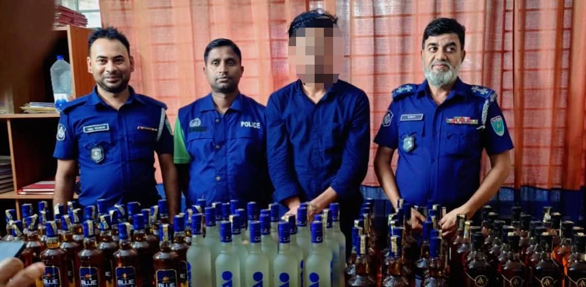 হবিগঞ্জের মাধবপুর থানা পুলিশ কর্তৃক ৯০ বোতল বিদেশি মদসহ একজন মাদক ব্যবসায়ীকে গ্রেপ্তার