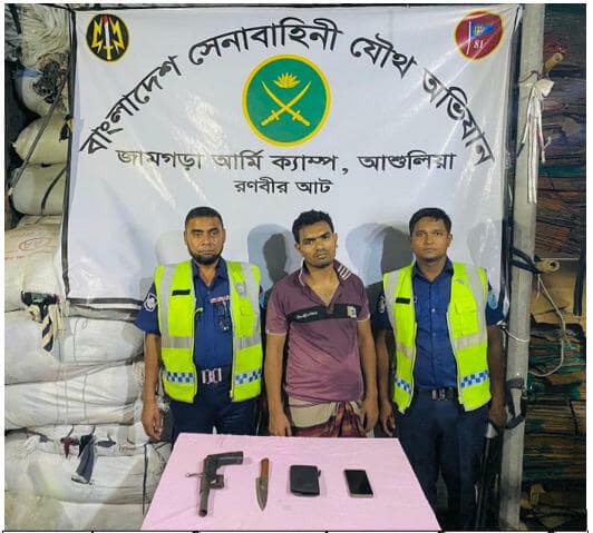 আশুলিয়ার জামগড়ায় ঝুট ব্যবসা নিয়ে অস্ত্রের মহড়া,সেনাবাহিনীর অভিযানে অস্ত্র সহ গ্রেফতার একজন